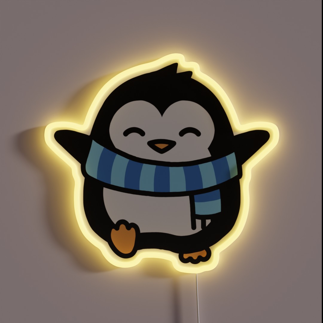 A colorful and festive neon sign featuring a holiday penguin in vibrant RGB colors, adding a fun and whimsical touch to any room during the winter season.