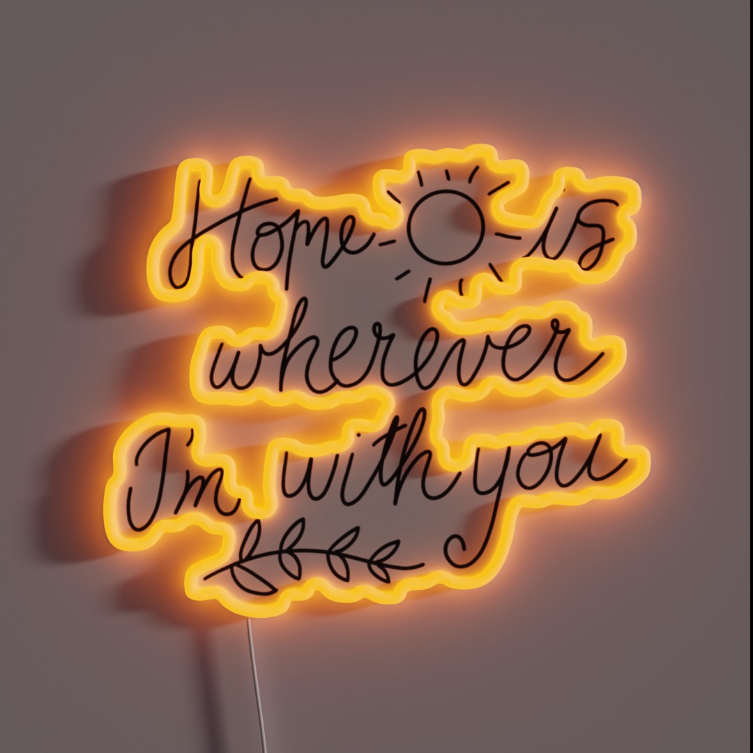 Bring warmth and personality to your space with our ‘Home is Wherever I’m With You’ RGB Neon Sign, a heartwarming phrase that shines bright in colorful LED lights.
