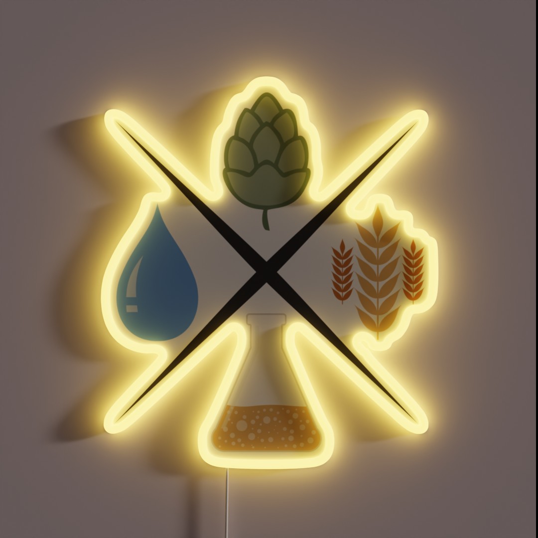 Add a touch of craft to your brewery with our vibrant 4-colour RGB neon sign featuring ‘Homebrewing Ingredients: Water, Grain, Hops & Yeast’ in bold, eye-catching letters.