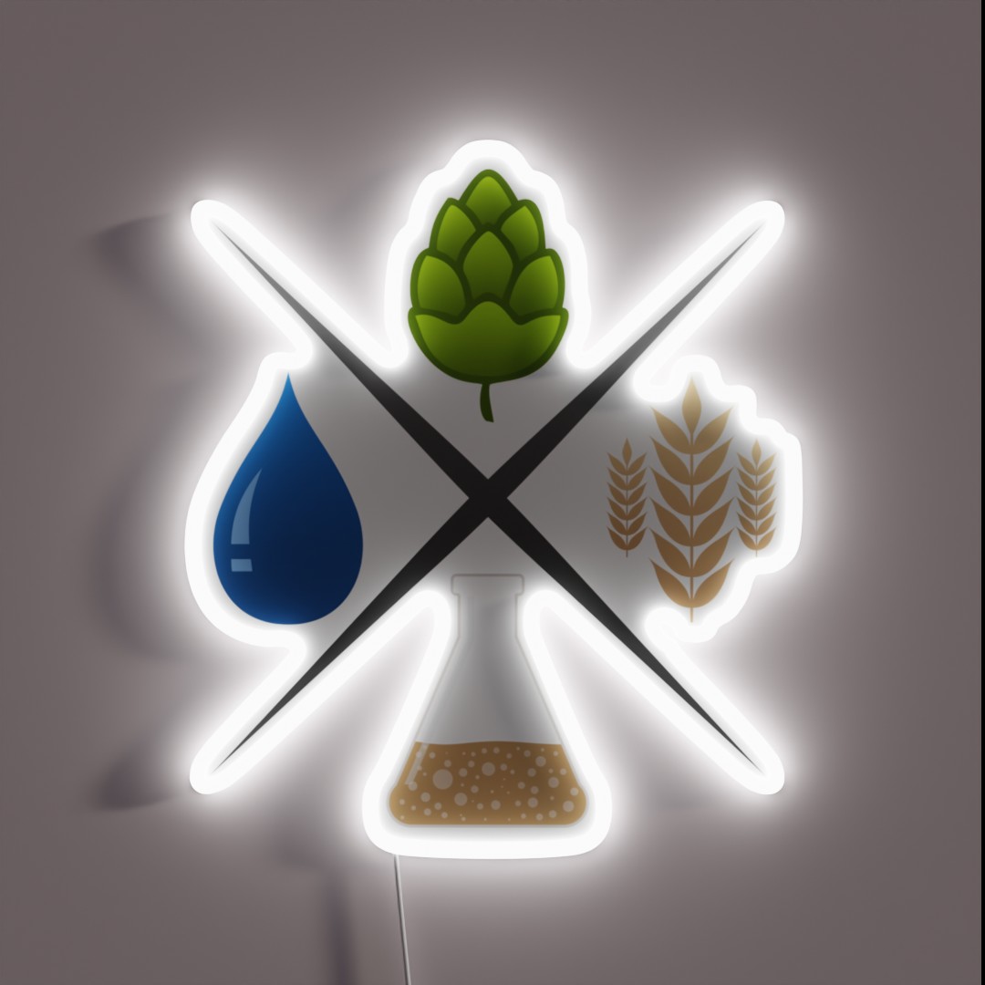 Illuminate your home brewery with this vibrant RGB neon sign, featuring essential brewing elements: water, grain, hops, and yeast.