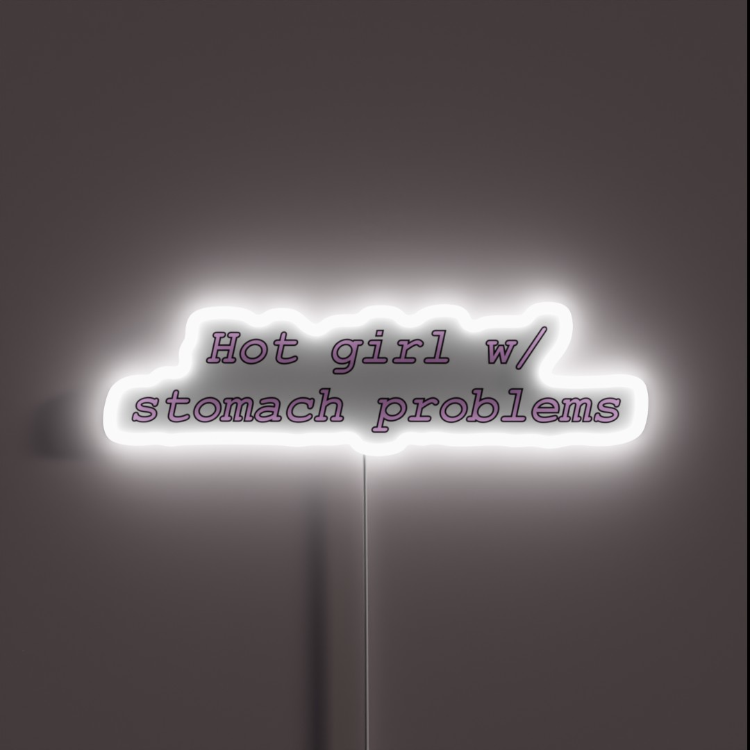 Add a vibrant touch to any space with this unique Hot Girl aesthetic neon sign featuring a humorous twist on an iconic phrase, complete with a stylized illustration of a woman with stomach issues.