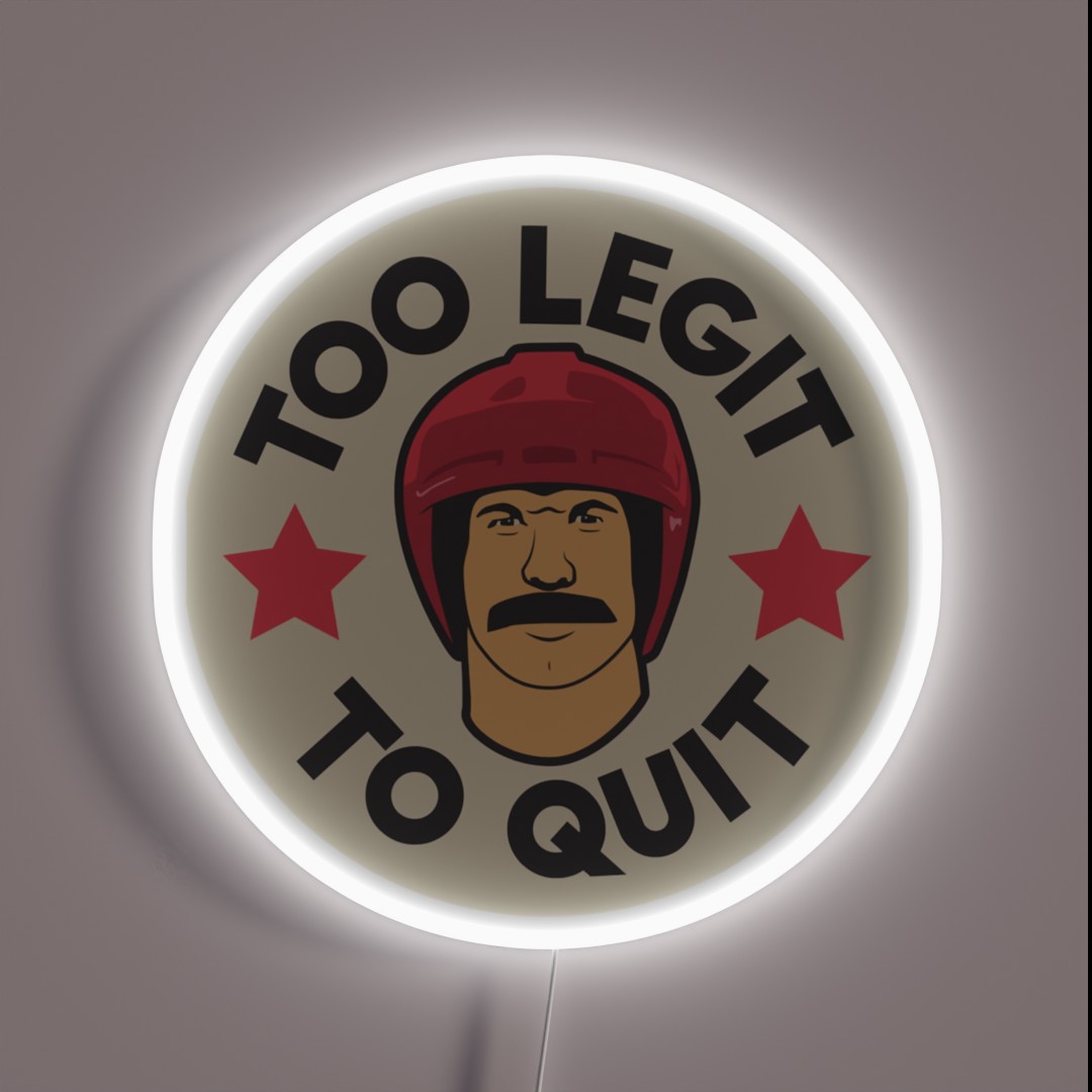 Add some retro humor to your garage or man cave with this ‘Too Legit to Quit’ neon sign inspired by the classic 1990s film Hot Rod, featuring a colorful RGB light-up design perfect for fans of comedy and nostalgia.