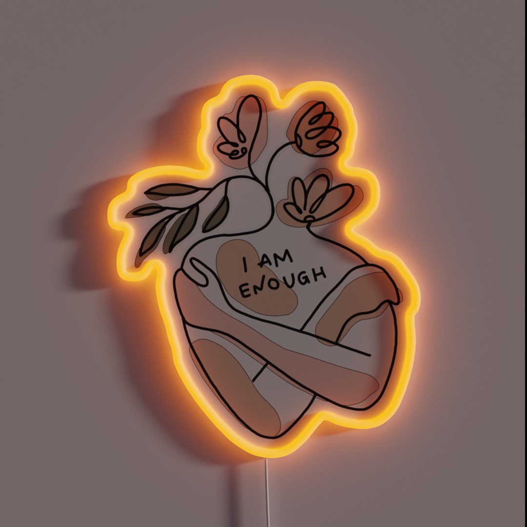 Affirmative self-love in neon form. Handcrafted LED ‘I Am Enough’ sign for those who need a daily reminder of their worth.
