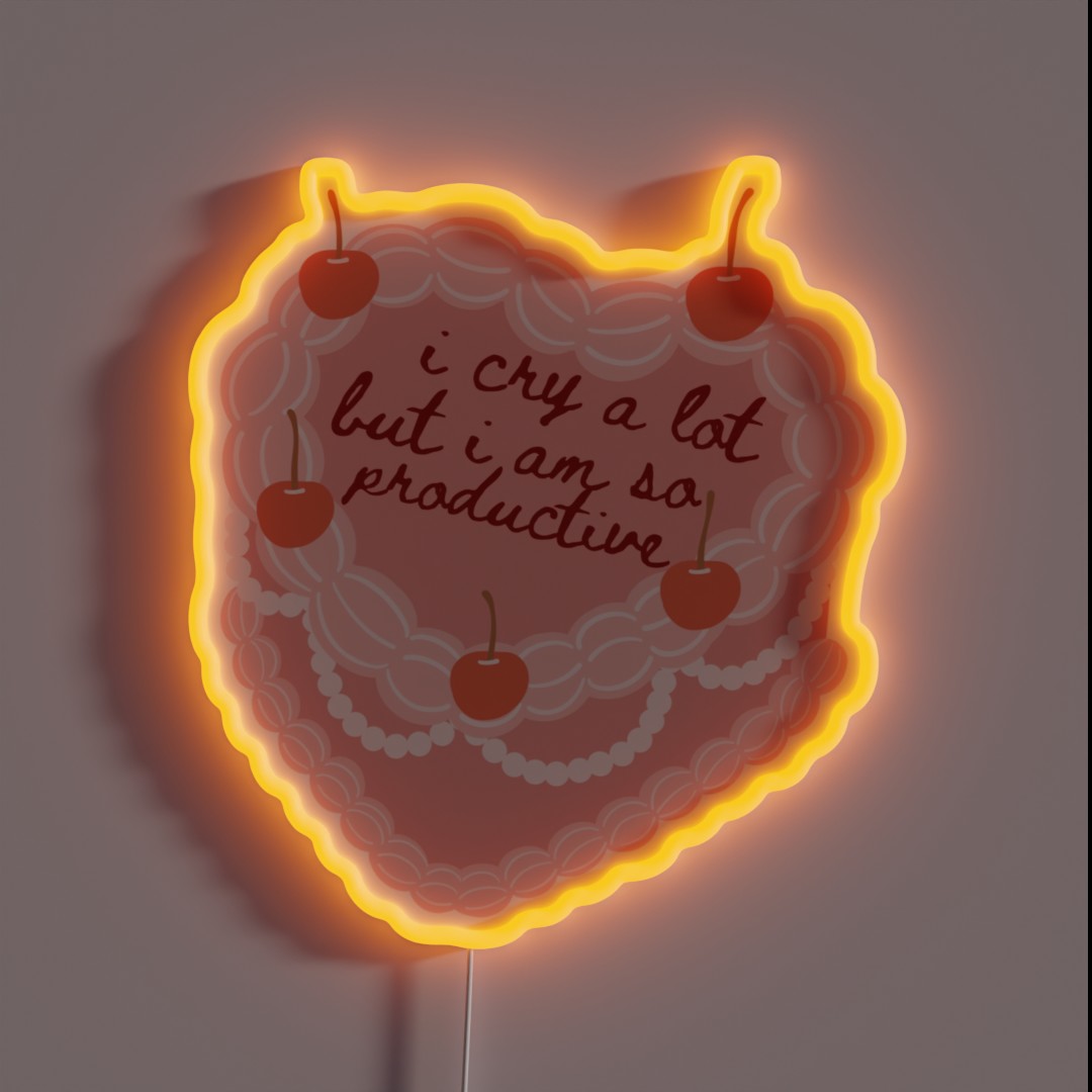 **I Cry a Lot but I’m So Productive Vintage Cake RGB Neon Sign**