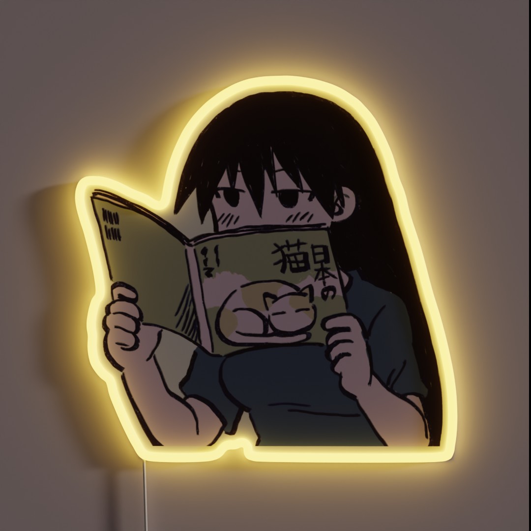 Bring the whimsy of Azumanga Daioh’s unique style into your home with our RGB Neon Sign featuring Sakaki reading a cute cat picture book. This eye-catching sign is designed for fans of the beloved manga and anime series, showcasing Sakaki in her iconic pose surrounded by vibrant pastel colors.