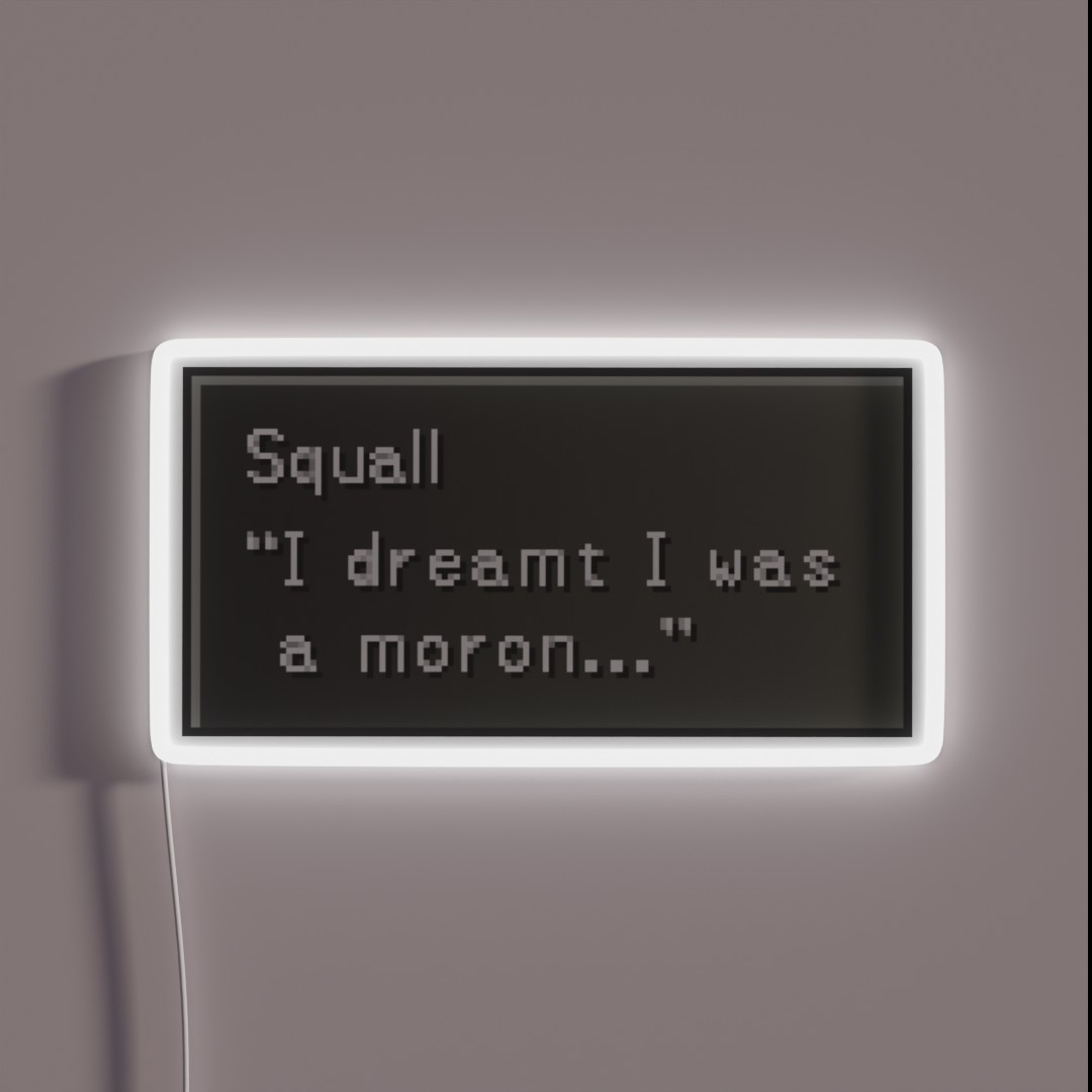 Bring the iconic world of Final Fantasy VII to your home or office with the I Dreamt I was a Moron Squall Leonhart Dialogue Box RGB Neon Sign. This eye-catching sign is a must-have for any fan of the beloved RPG series.
