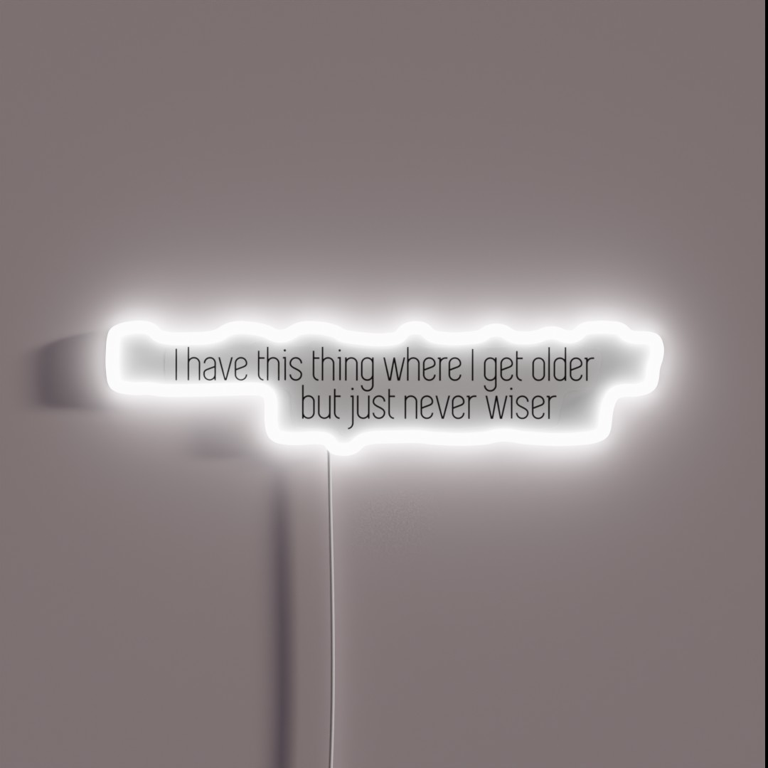 Laugh at life’s irony with our ‘I Have This Thing Where I Get Older But Just Never Wiser’ RGB neon sign, a humorous twist on growing up.