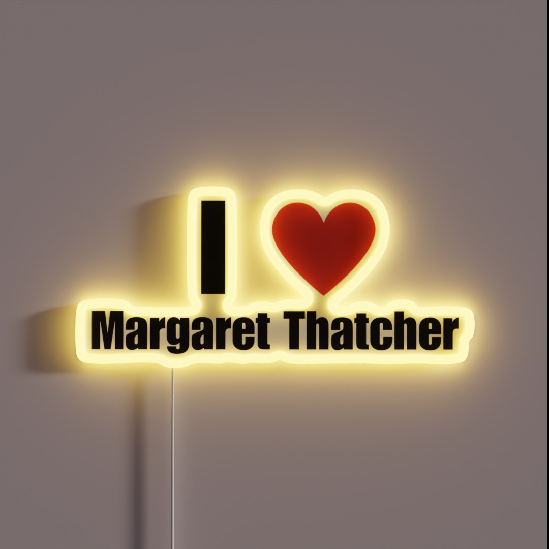 Bring a touch of British politics and nostalgia into your home with the “I Heart Margaret Thatcher” RGB neon sign. This unique and eye-catching decoration is a tribute to one of history’s most iconic leaders, perfect for fans of Iron Lady or anyone looking to add some retro flair to their space.