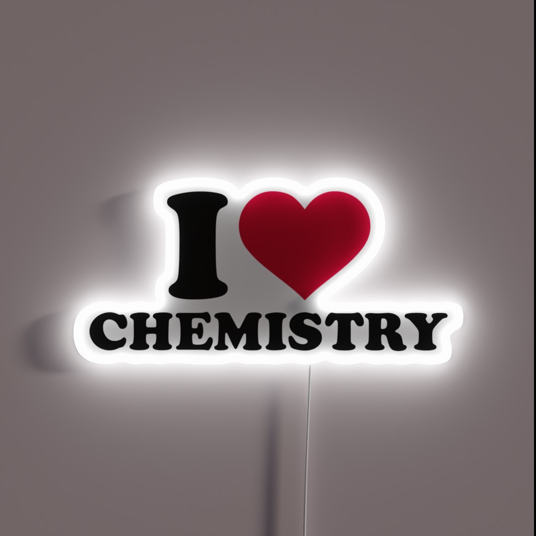 Customizable I Love Chemistry Neon Sign with RGB LED lights, perfect gift for science enthusiasts and lab lovers.