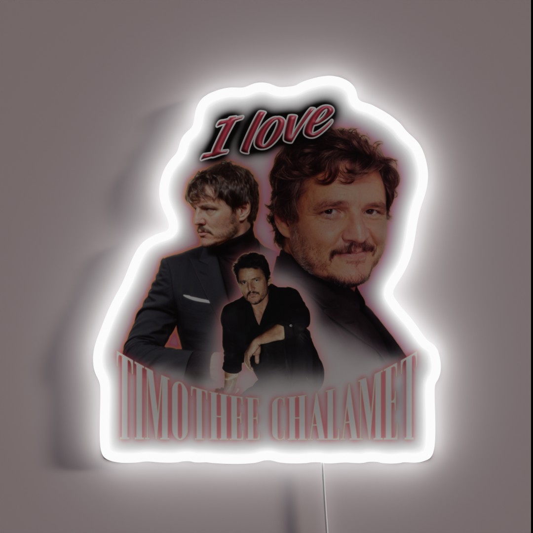 **I Love Timothee Chalamet Pedro Pascal Cursed Fan Collage RGB Neon Sign**