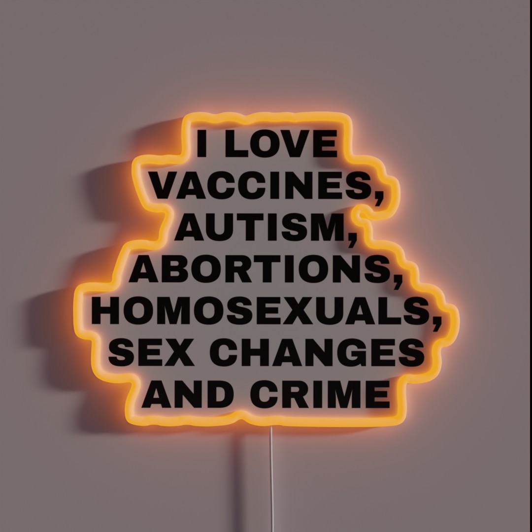I Love Vaccines Autism Abortions Homosexuals RGB Neon Sign