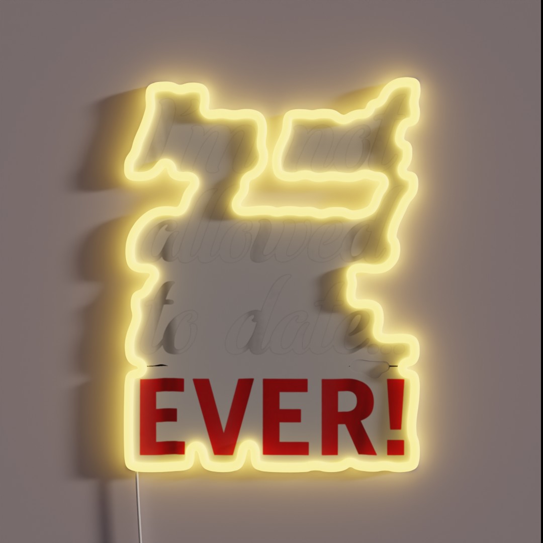 Add a touch of edgy humor to your space with this ‘I’m Not Allowed to Date Ever’ RGB neon sign, perfect for singles who laugh at love and live life on their own terms.