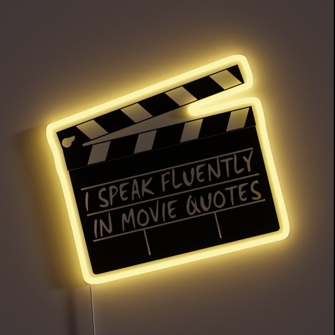 Illuminate your personality with our ‘I Speak Fluently in Movie Quotes’ RGB neon sign, perfect for film buffs and pop culture enthusiasts to showcase their love for cinematic dialogue in a unique and eye-catching way.