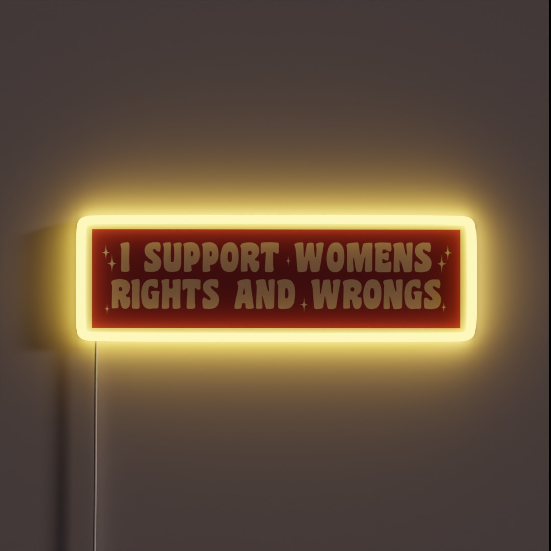 **Stand Out with a Statement Piece: I Support Women’s Rights and Wrongs Funny Car Bumper RGB Neon Sign**