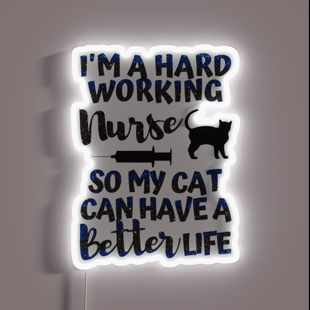 Bring home a heartfelt reminder of your dedication to your feline friend with ‘I Work Hard So My Cat Has a Better Life’ RGB Neon Sign, perfect for nurses and cat lovers alike.