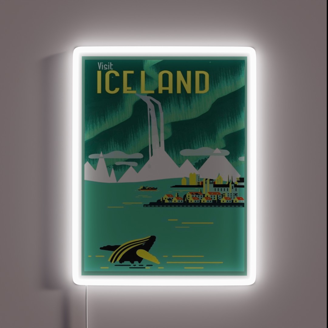 Add a touch of vintage charm to your home or office with this authentic 1960s Icelandic travel advertisement print now converted into a vibrant RGB neon sign. Perfect for travelers, design enthusiasts, and anyone who loves unique decor.