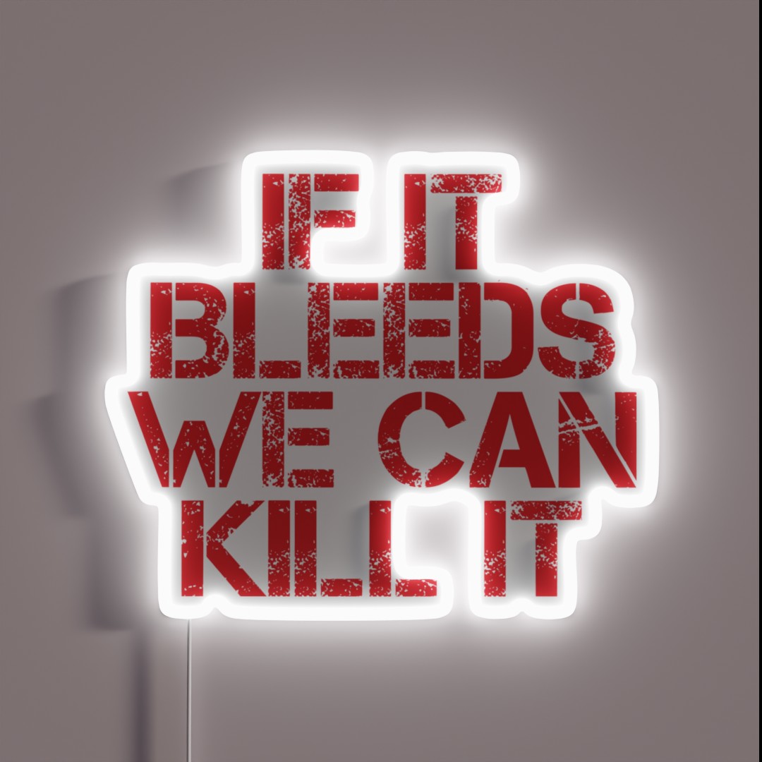 Bring a touch of darkness and nostalgia to your gaming lair or home bar with the “If It Bleeds We Can Kill It” RGB neon sign. This eye-catching, high-tech display is perfect for fans of horror games and enthusiasts of all things eerie.