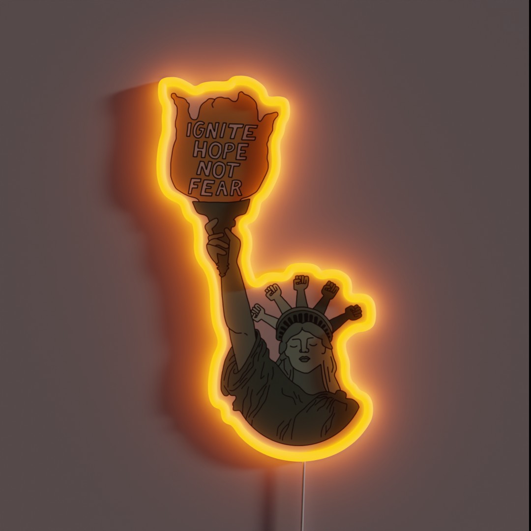 Bring light and positivity into any space with our vibrant Ignite Hope Not Fear RGB neon sign, featuring a motivational message that sparks inspiration and uplifts your mood.