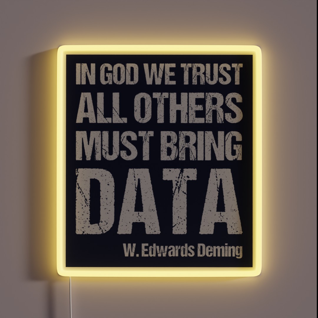 Add a dash of humor and skepticism to your office or man cave with the ‘In God We Trust, All Others Must Bring Data’ RGB neon sign. Perfect for data enthusiasts and skeptics alike.