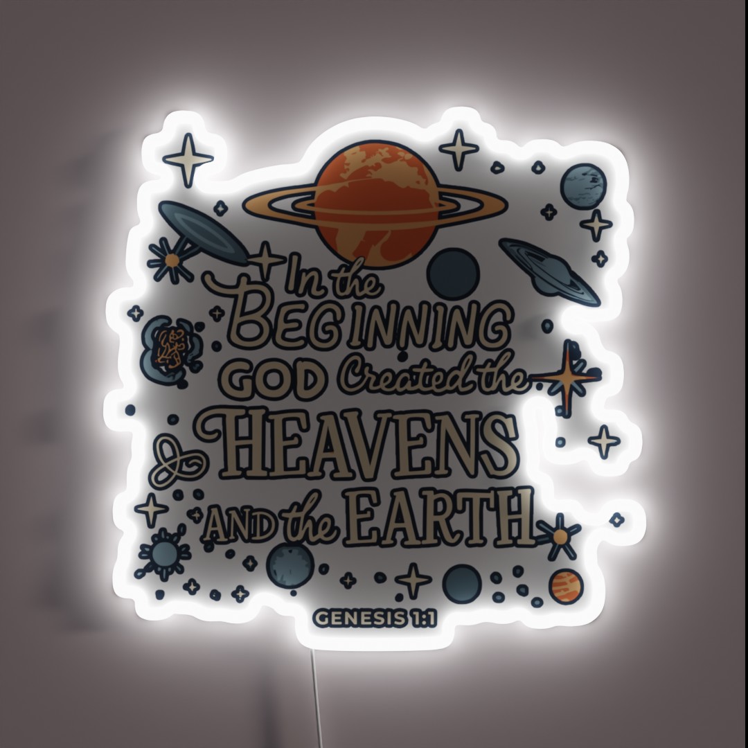 In The Beginning God Created Heavens Genesis RGB Neon Sign