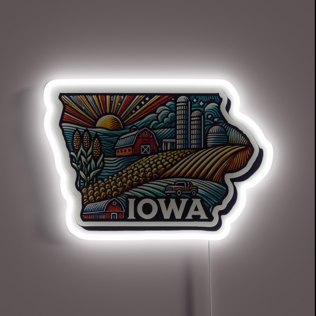 Illuminated “Iowa” state name in vibrant RGB neon lights, perfect for home decor or gift.