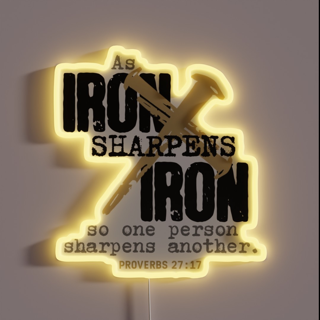 Bring a touch of wisdom and style to your space with this unique Iron Sharpens Iron Proverbs 27:17 black RGB neon sign. Order yours today!