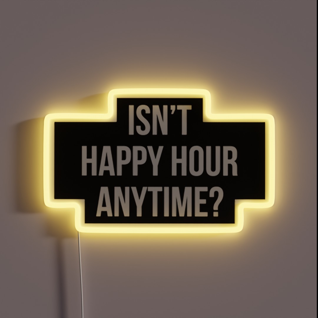 This isn’t just a decorative piece – it’s a statement piece. The “Isn’t Happy Hour Anytime Version 2” RGB neon sign is perfect for: