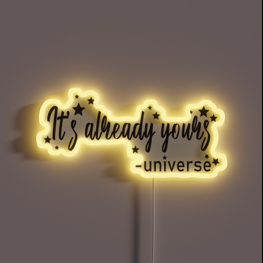Add a touch of vibrant personality to your space with the ‘It’s Already Yours’ RGB neon sign, perfect for bedrooms, offices, or any room that needs a statement piece.