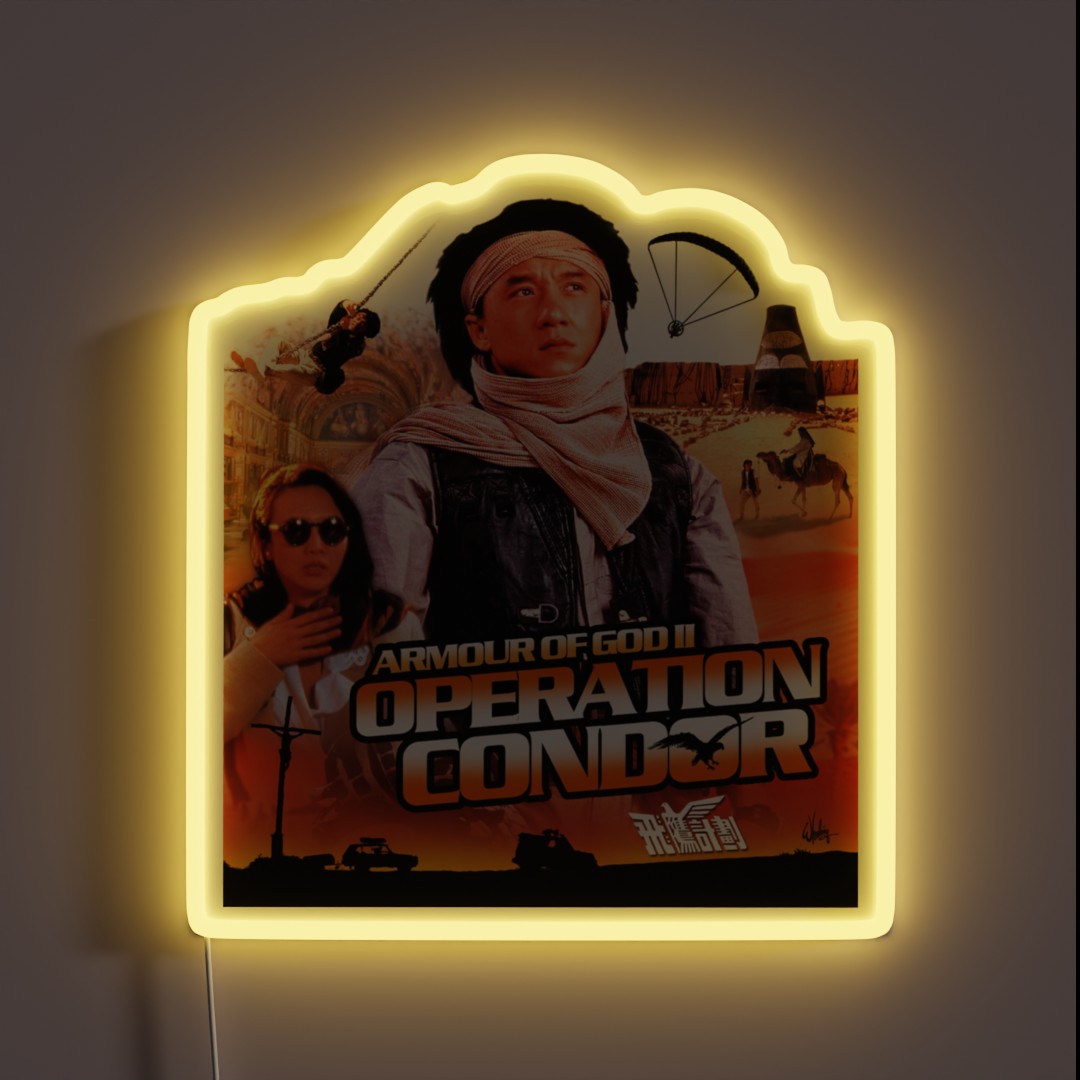 The Armour of God II Operation Condor RGB neon sign is not just a decorative piece – it’s an immersive experience that will transform your space into a high-energy environment. Perfect for fans of action movies or those looking to add a touch of excitement to their home, office, or game room.