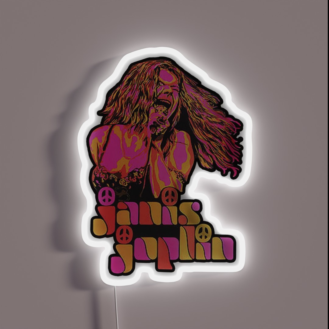 Vibrant Janis Joplin-inspired Pop Art LED neon sign with customizable RGB color options, adding a psychedelic touch to any room’s decor.