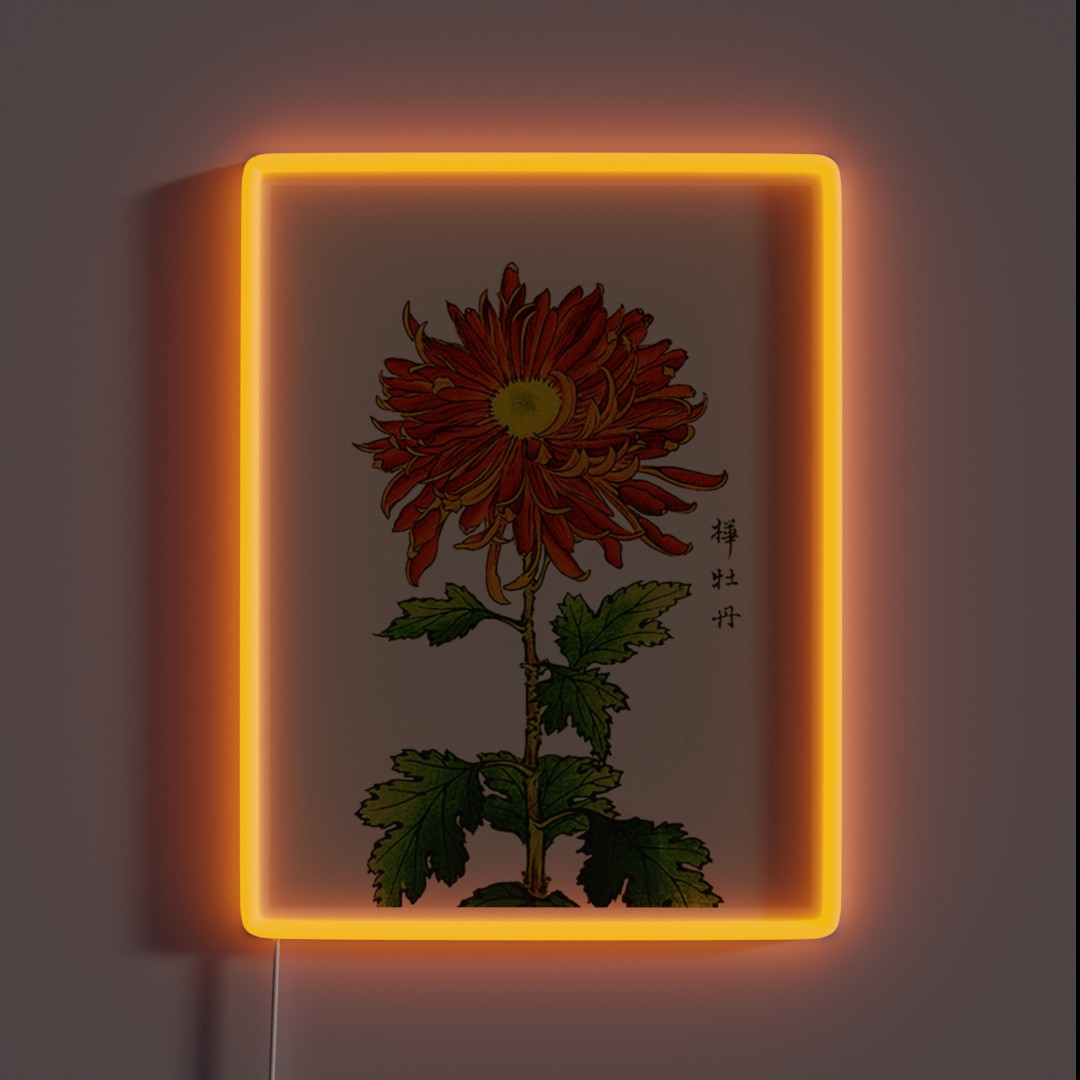 **Japanese Chrysanthemum Orange and Gold RGB Neon Sign**