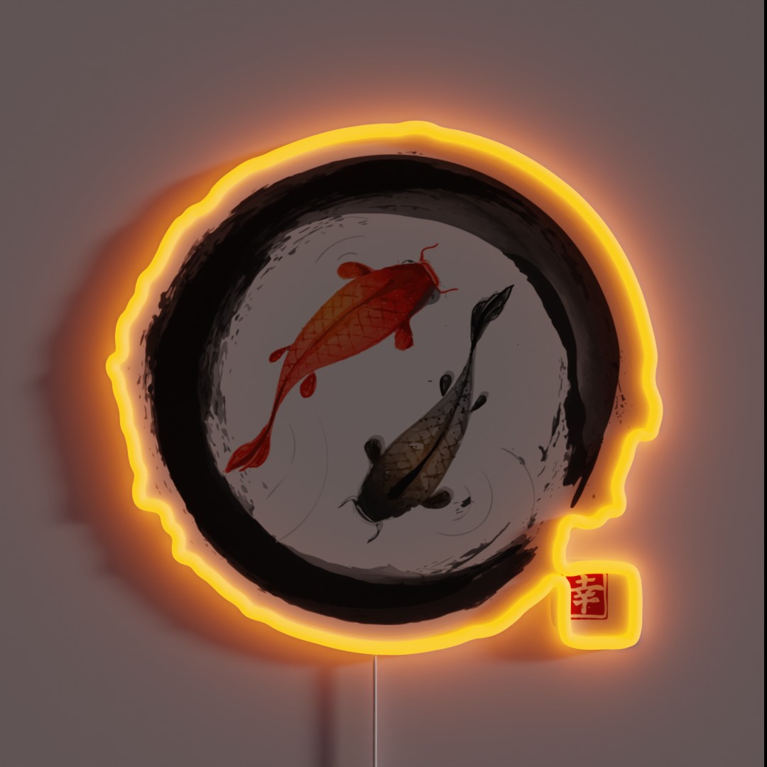 Japanese Koi Vintage Ink Shodo RGB Neon Sign