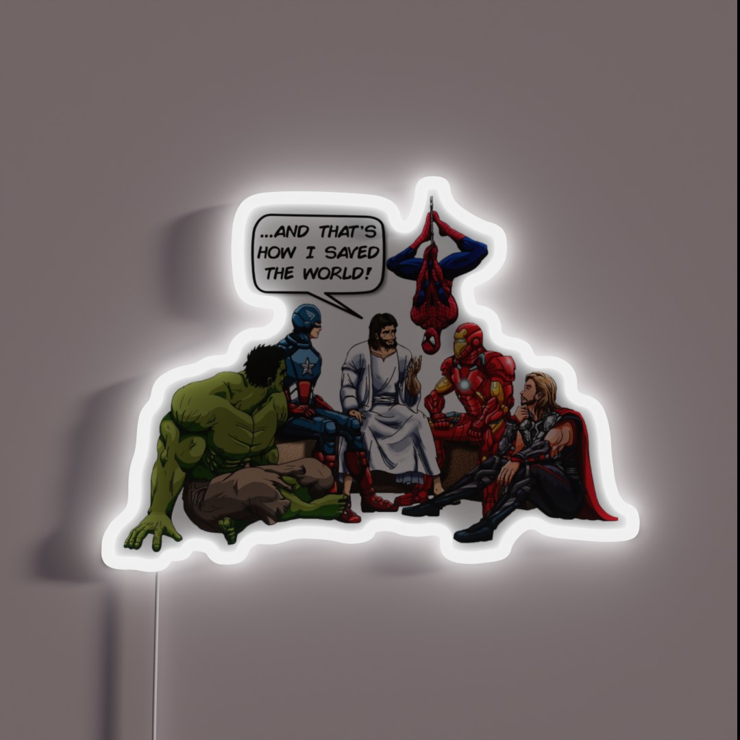 **Illuminate Your Faith with Jesus and the Superheroes RGB Neon Sign**
