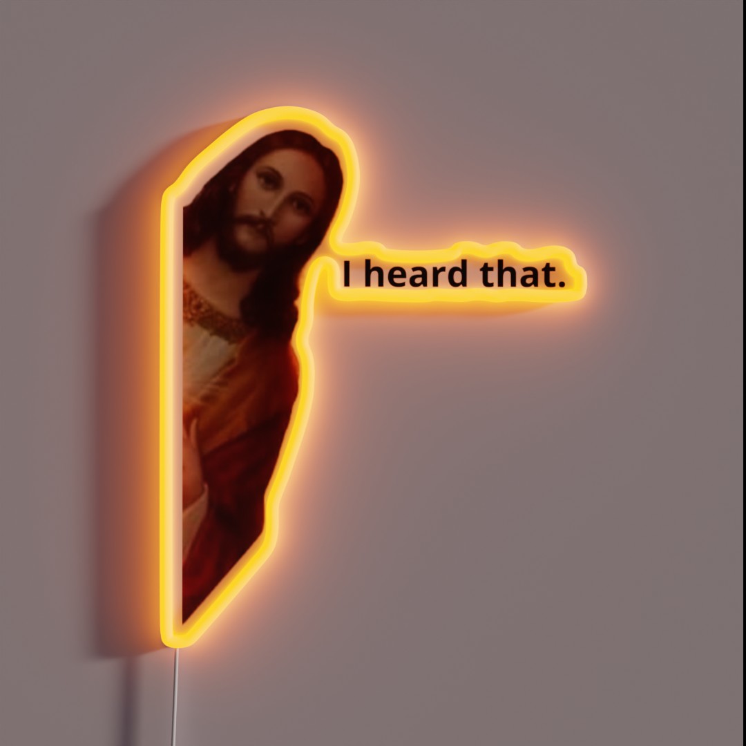 Light up your faith with the Jesus I Heard That Meme RGB Neon Sign, a humorous and eye-catching way to express your personality.