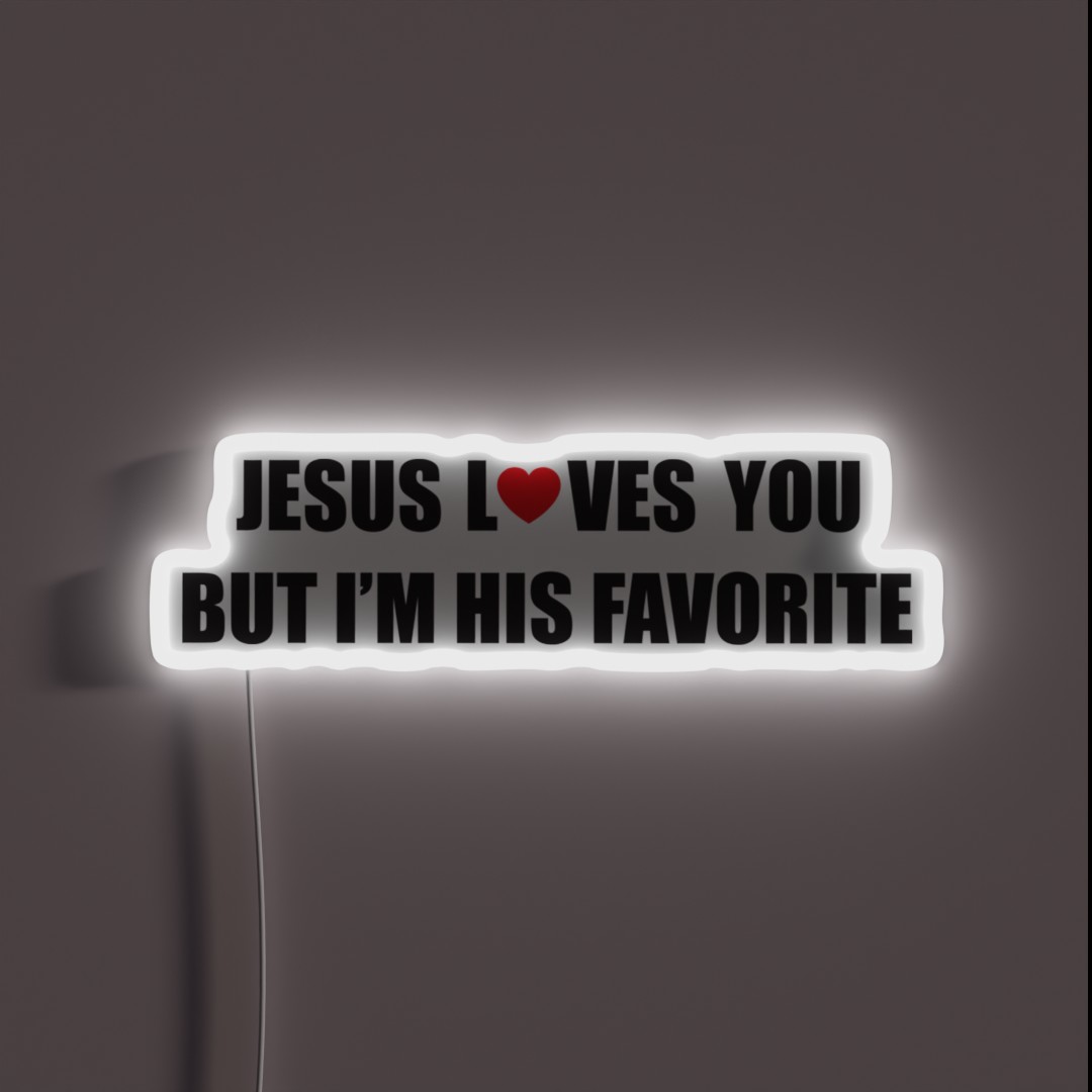 Brighten up your space with a fun and faith-filled twist! ‘Jesus Loves You But I’m His Favorite’ RGB neon sign combines humor and devotion in one radiant display.