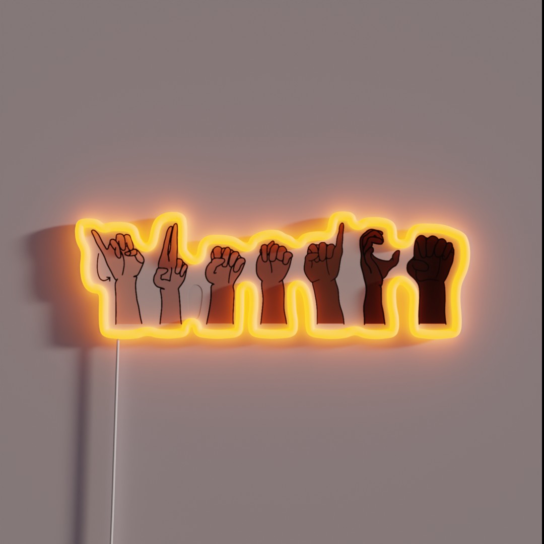 Our neon sign features the iconic handshapes used in American Sign Language (ASL), carefully crafted to provide a beautiful visual representation of the language. The LED technology ensures that this sign is not only durable but also shatter-resistant, eliminating the risk of breakage associated with traditional glass signs.