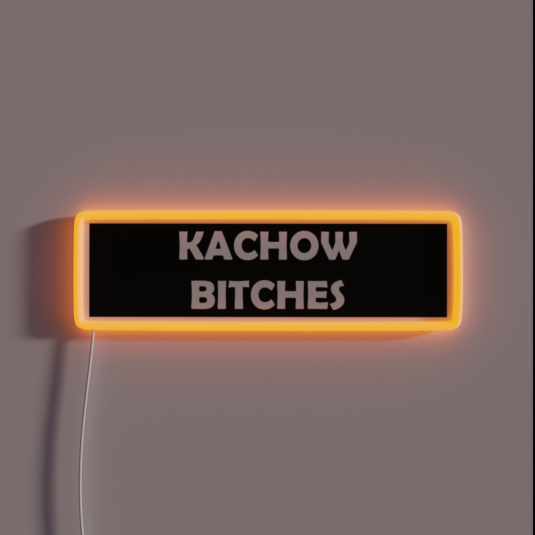 Add a vibrant touch to your gaming setup or home decor with the Kachow Bitches RGB Neon Sign, featuring electric glow and customizable lighting effects.