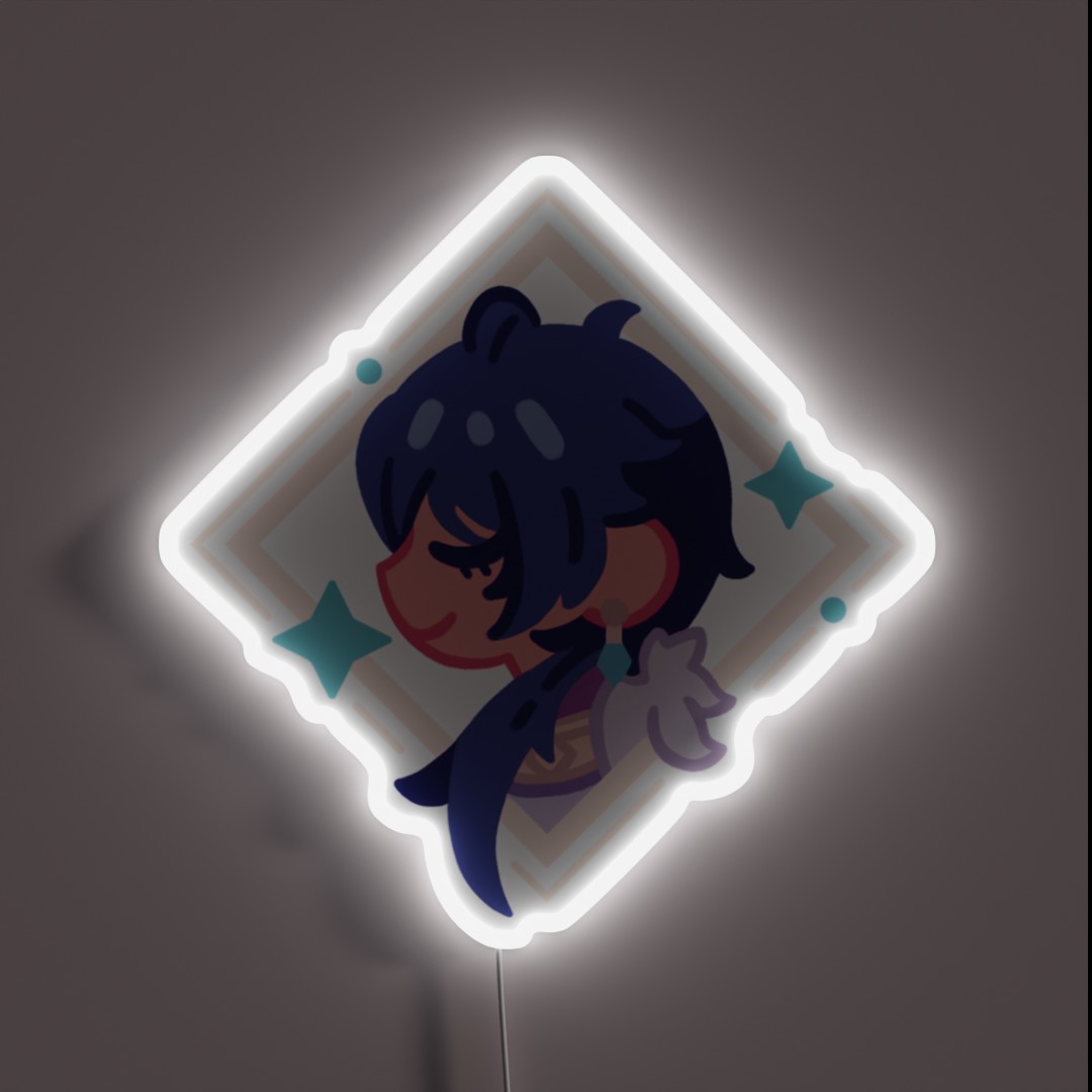 A vibrant, handcrafted Kaeya RGB neon sign, perfect for Genshin Impact fans to illuminate their rooms with a radiant, colorful display of their favorite character’s symbol.