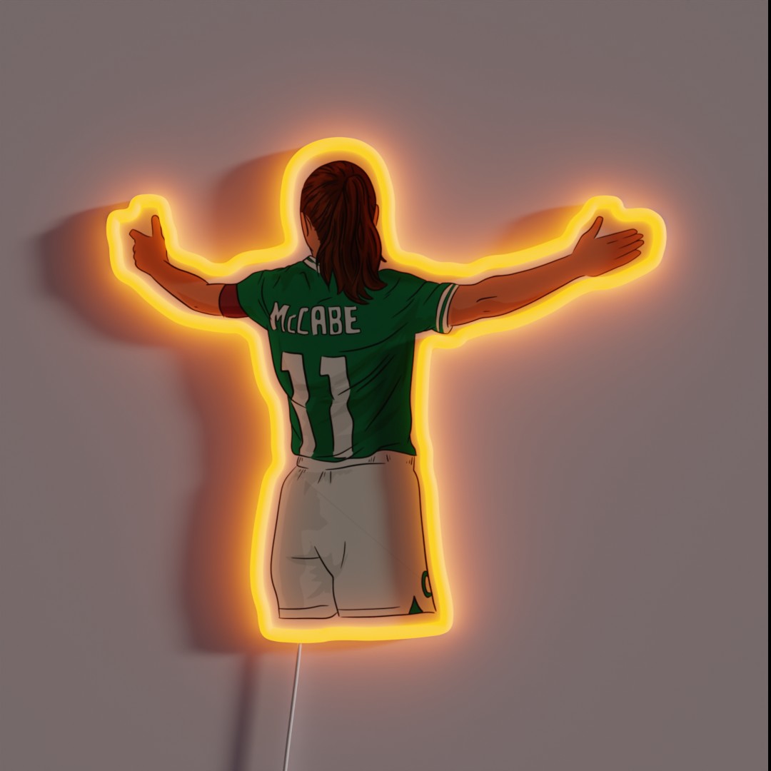 Introducing the Katie McCabe Celebration RGB Neon Sign, a vibrant tribute to the talented Irish footballer’s achievements on and off the pitch! This stunning sign is not just a decorative piece, but also a symbol of inspiration for fans worldwide.