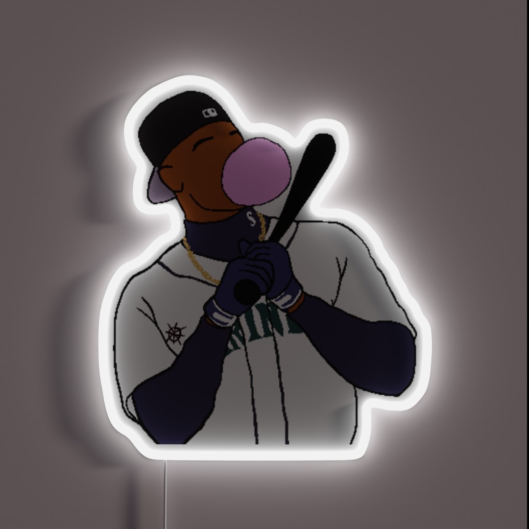 Step up your sports memorabilia game with this unique and eye-catching Ken Griffey Jr Bubblegum Backwards Hat RGB Neon Sign! This exceptional display is a must-have for any baseball fan, nostalgic collector, or anyone looking to add a pop of personality to their space.
