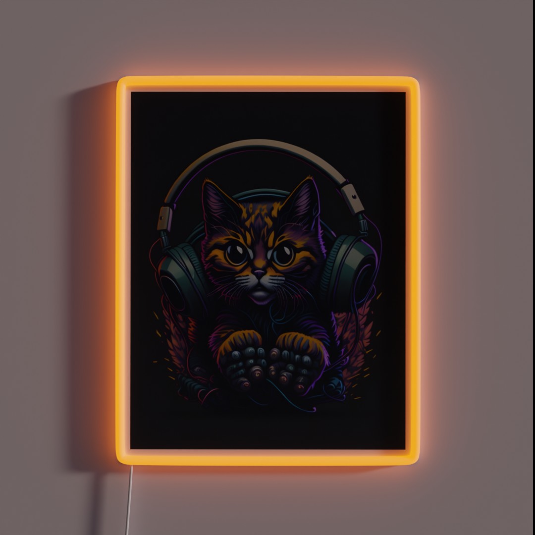 Kitty Hooked Up For Sound RGB Neon Sign