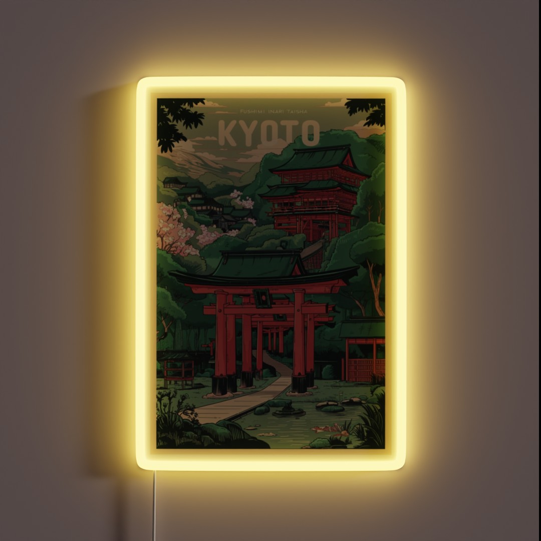 A nostalgic and eye-catching Kyoto-inspired travel vintage RGB neon sign that brings a touch of Japan’s vibrant culture to your home or office, perfect for fans of Japanese history and design.