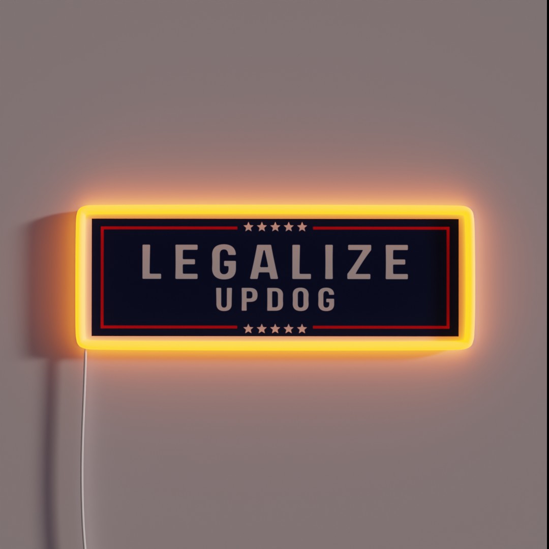 Add a pop of personality to your space with the Legalize Updog Bumper RGB neon sign, perfect for gaming enthusiasts and fans of nostalgic culture.