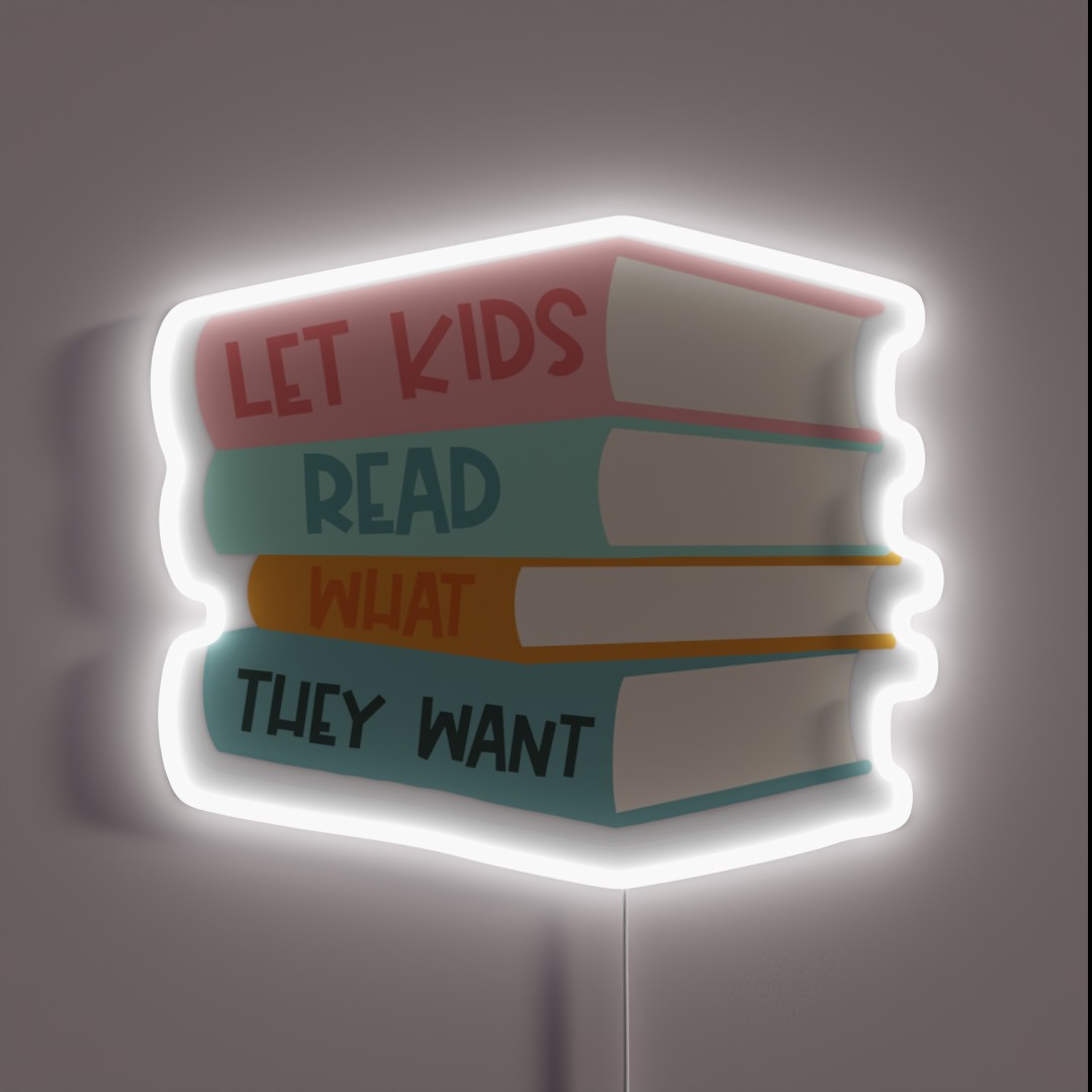 Embracing individuality, this customizable ‘Let Kids Read What They Want’ RGB neon sign promotes literacy and self-expression in children’s bedrooms or playrooms.
