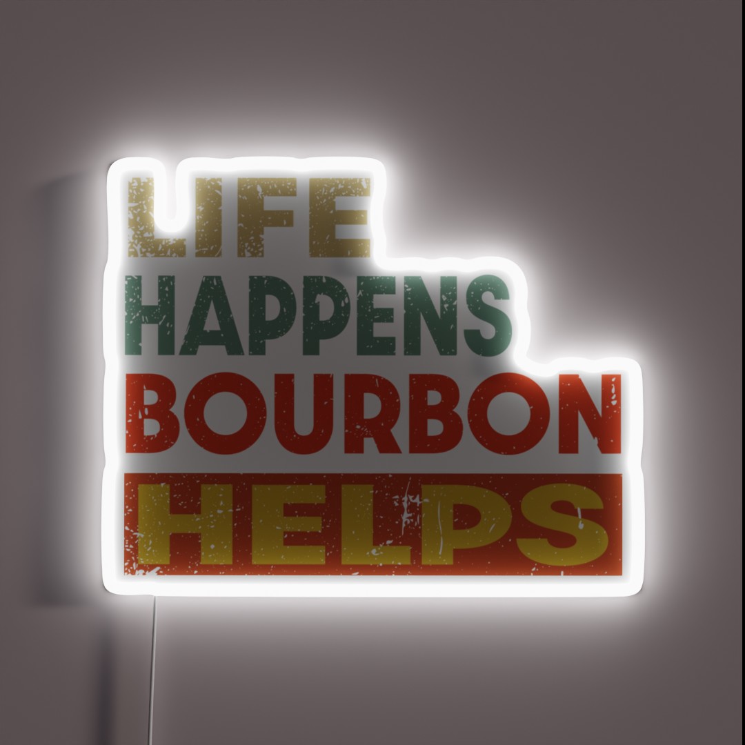 **Life Happens Bourbon Helps Funny Bourbon Lover RGB Neon Sign**