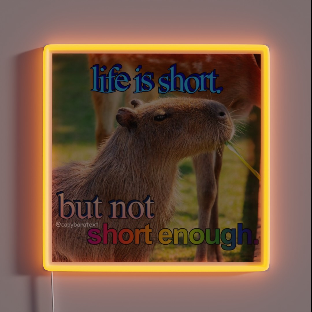 **Life Is Short Capybara Meme RGB Neon Sign**