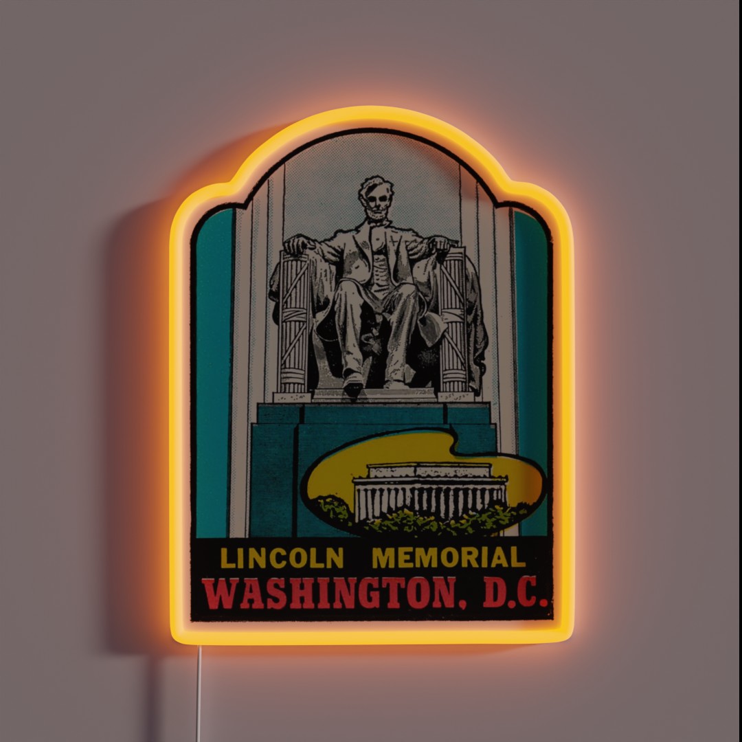 **Add a Touch of American History to Your Space with this Lincoln Memorial Washington DC Vintage Travel Decal RGB Neon Sign**