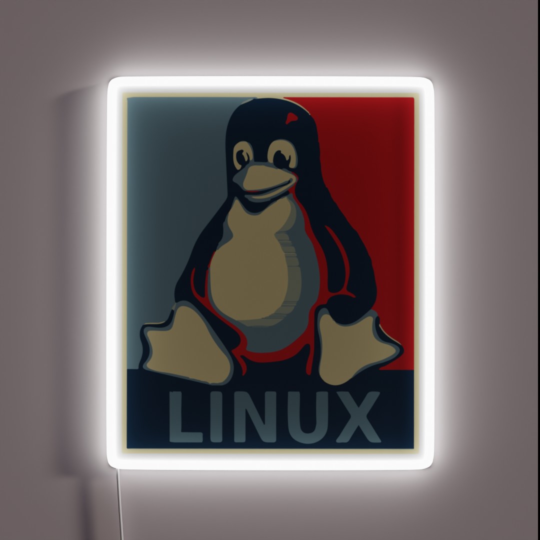 Introducing the Linux Tux Penguin Obama Poster RGB Neon Sign, a unique and eye-catching addition to any room or office. This sign combines the nostalgic charm of a classic neon display with modern technology and a dash of geeky flair.
