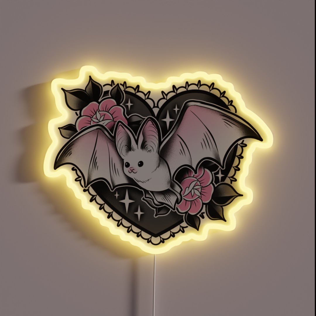 Add a touch of edgy sophistication to any room with our Little Bat RGB neon sign, featuring sleek lines and vibrant LED lighting that can be customized to any color combination.