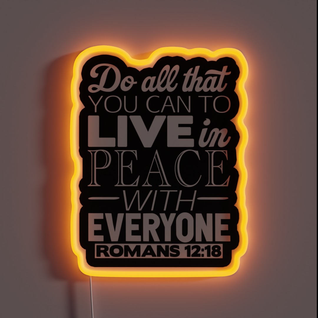 Live In Peace With Everyone Romans 12 18 RGB Neon Sign